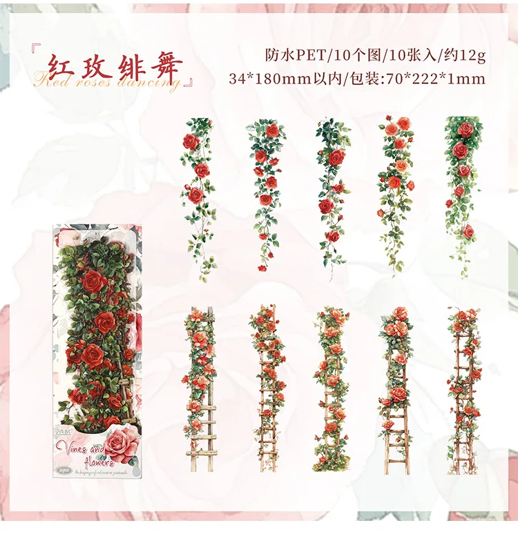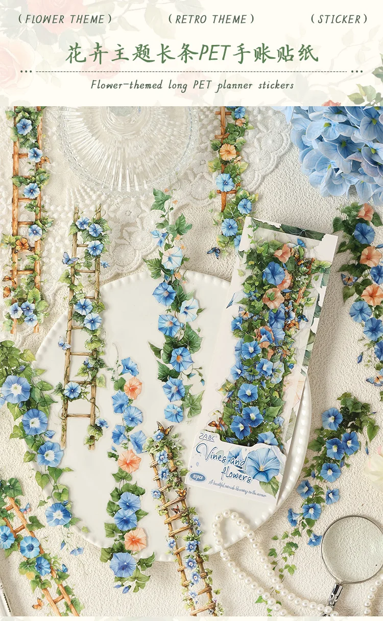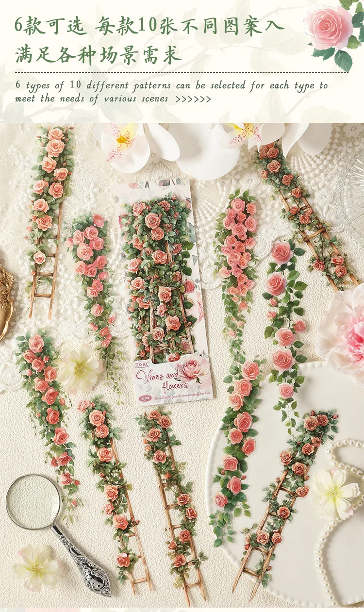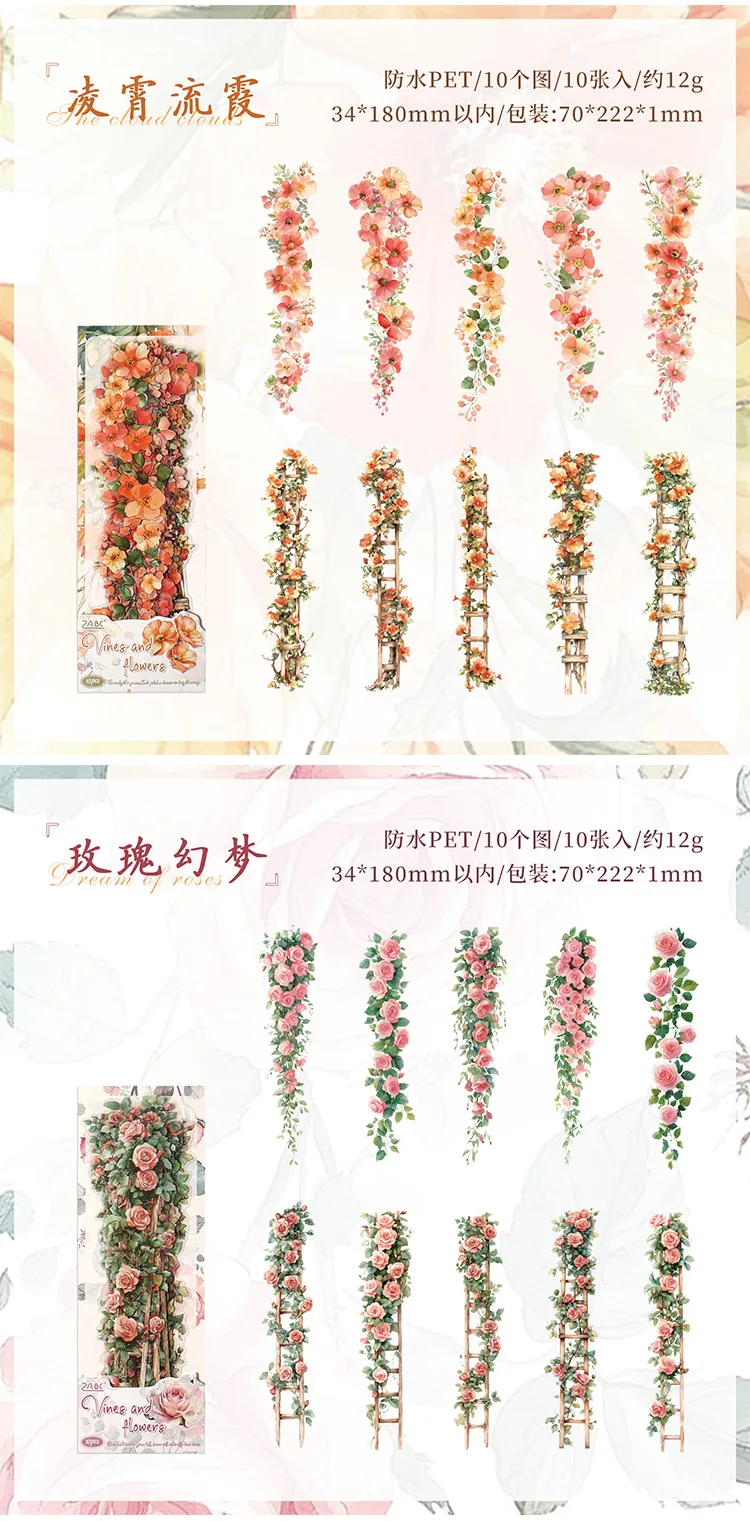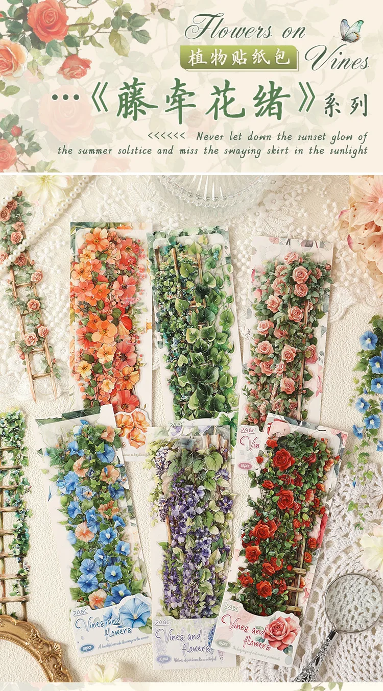 0-Sheet Long Floral Sticker Set, Charming Flower Designs, Ideal for Scrapbooking & Card Making