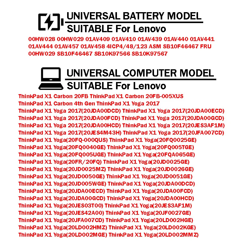00HW028 15.2V 52Wh 01AV457 4Cell Genuine Original Laptop Battery For Lenovo X1 Yoga 2016-2017Year Carbon 4TH GEN 20FQ 20FR 20JD